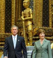 | President George W. Bush and First Lady Laura Bush tour the Grand Palace and the Temple of the Emerald Buddha in Bangkok on Sunday. (AP) |
