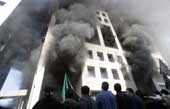 Beirut, Feb. 5 (Reuters): Angry demonstrators set the Danish consulate in Beirut ablaze today, and the violent turn in protests over publication of cartoons of the Prophet Mohammad drew condemnation from European capitals and moderate Muslims.