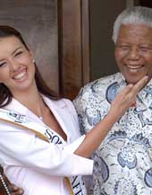 | Miss South Africa Cindy Nell poses with Nelson Mandela at his home in Johannesburg. (AP/PTI) |