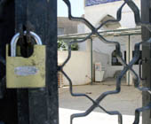 | The locked gate of the Balat al-Shuhada Sunni mosque in Baghdad. Thousands of Sunnis across Baghdad were observing a three-day prayer strike over a series of killings against Sunnis. (AFP) |