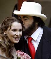 | Luciano Pavarotti kisses Nicoletta Mantovani after their wedding in Modena, Italy. (AFP) |