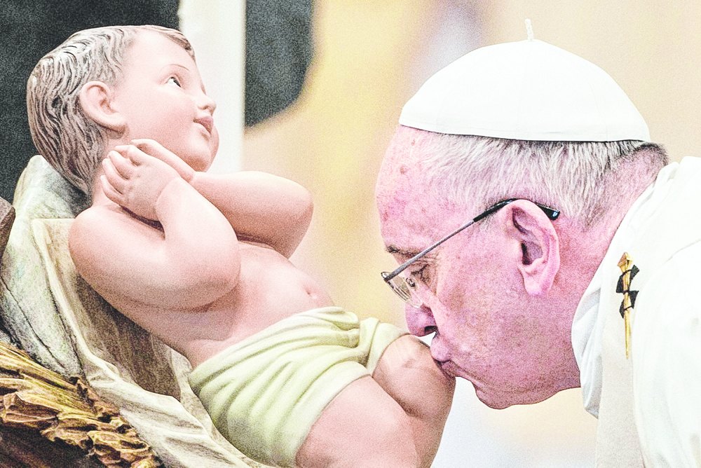 Pope Francis kisses a statue of the baby Jesus at the Vatican on Thursday. (AP)