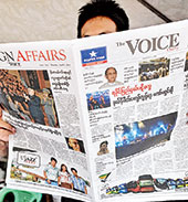 | A man reads The Voice daily in Yangon on Monday. (AFP) |