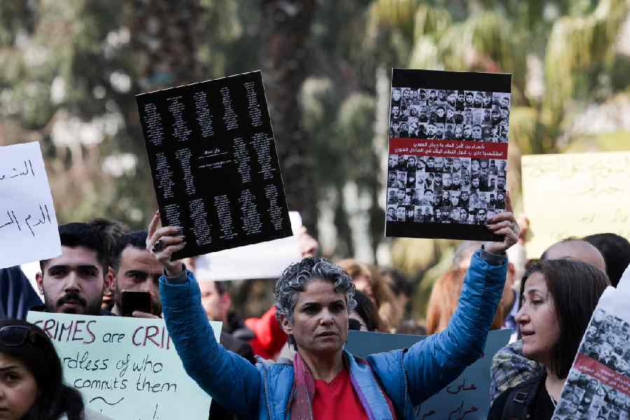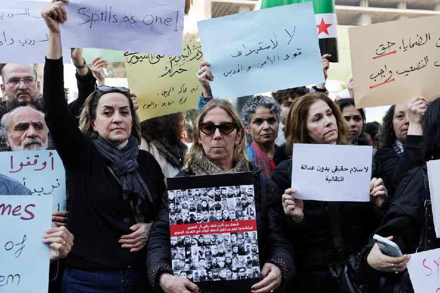 Protest against the killing of civilians and security forces linked to Syria's new rulers in Damascus (Reuters)