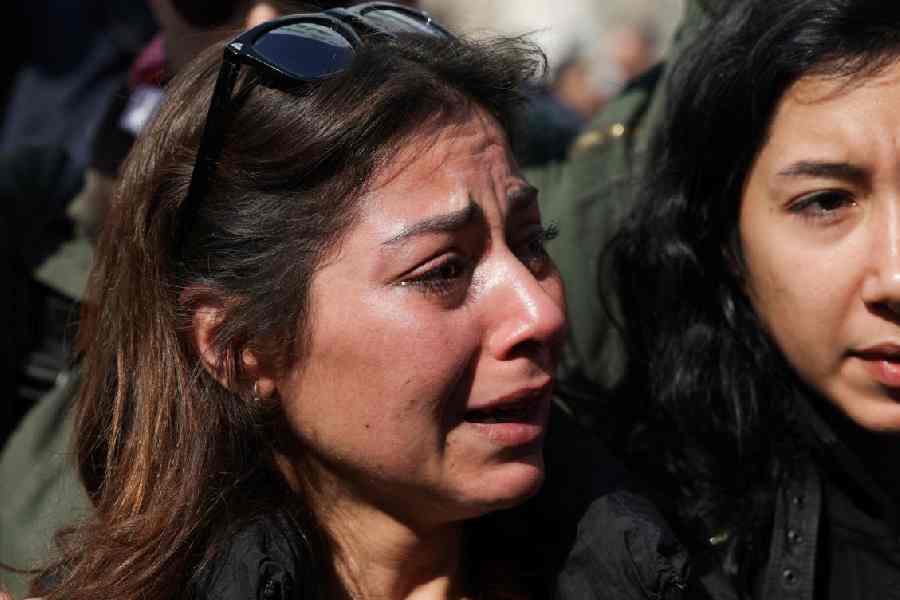 A woman reacts as people protest against the killing of civilians and security forces (Reuters)