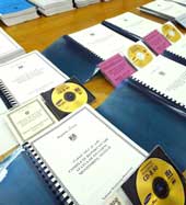 | Documents and CD-ROMs containing the declaration of Iraqi weapons programmes on display in Baghdad on Saturday. (AFP) |