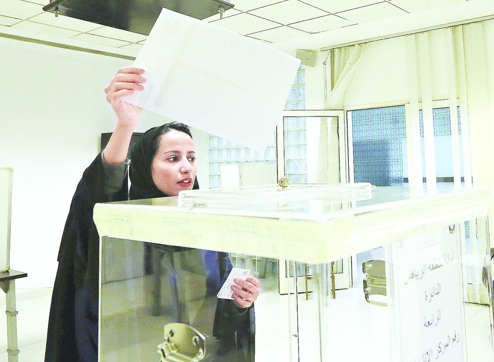 The election, which follows men-only polls in 2005 and 2011, is for two thirds of seats on councils that previously had only advisory powers, but will now have a limited decision making role in local government.