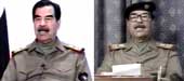 | (Left) Saddam during the state television broadcast on Monday and earlier during a speech on Al-Jazeera television on March 20 after the US attacked Iraq. (Reuters) |