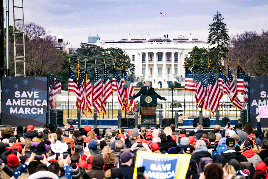 FILE — President Donald Trump addresses supporters outside the White House in Washington on Jan. 6, 2021, hours before the mob he incited attacked the Capitol. (Pete Marovich/The New York Times)
