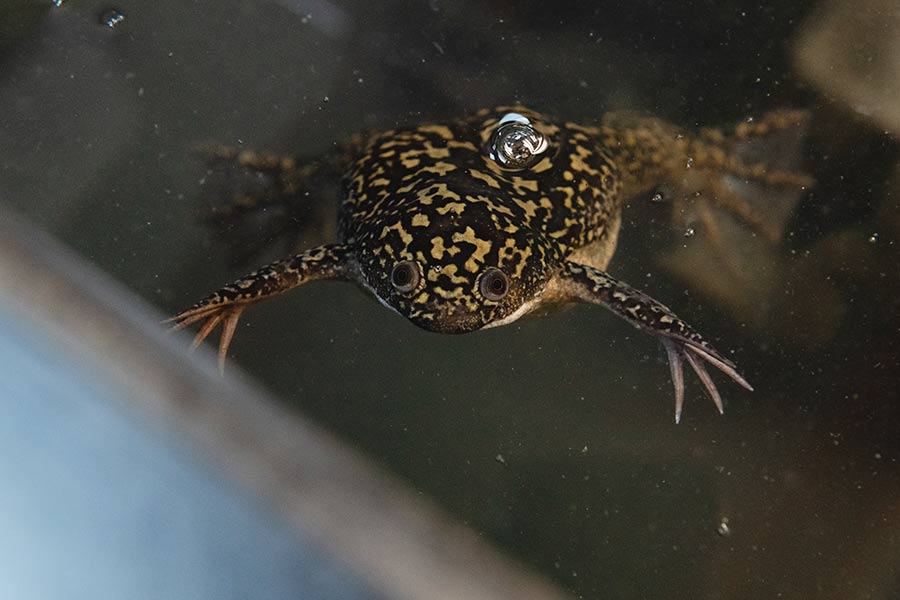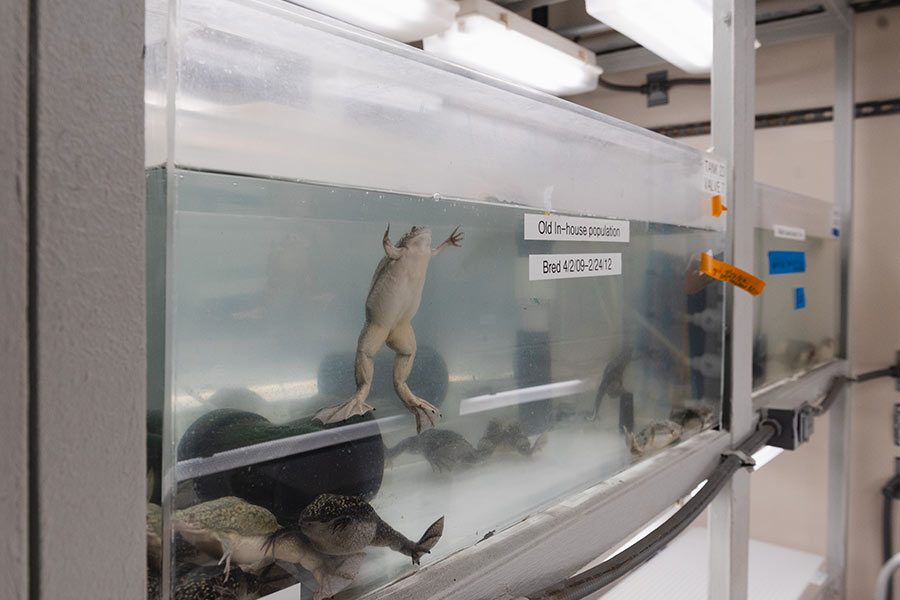 The Kirschner Lab, where Peshkin works, is investigating the earliest stages of cell division. These changes are easy to observe in the eggs of the xenopus frog, which are large and hardy. To lure Marc W. Kirschner to Harvard, the university constructed a vast aquarium where females bob in circulating water, known internally as the “frog palace.”