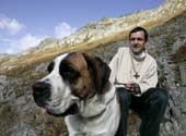 | Brother Frederic with a St Bernard at the Grand St Bernard pass on the border between Switzerland and Italy. (Reuters) |