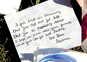 | A note forgiving gunman Seung-Hui Cho at a memorial on the Virginia Tech campus. (Reuters) |
