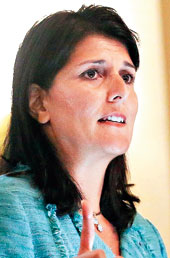 Critics on social media circulated photos of her test-firing a semiautomatic weapon at a South Carolina firearms plant in 2013. And when at a prayer service the day after massacre a pastor decried gun violence and called for new limits on guns, Haley pointedly stayed seated as the congregation rose to its feet.