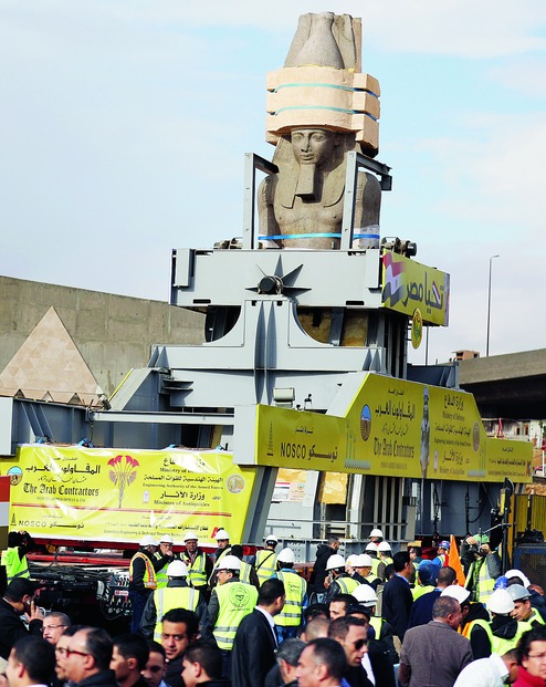The statue of King Ramses II on its way to the Grand Egyptian Museum