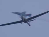 | A Tornado fighter jet from the German Air Force flies behind the stolen light plane over Frankfurt. (AFP) |