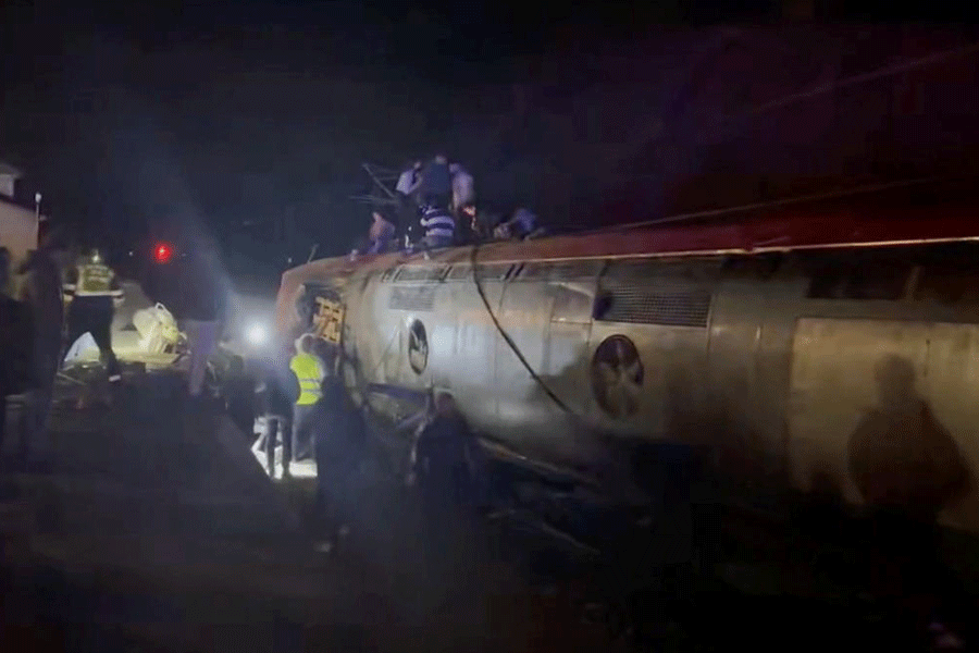 Spain’s Transport Minister Oscar Puente said the back part of the first train derailed and crashed into the front of the second train, knocking its first two carriages off the track and down a slope.