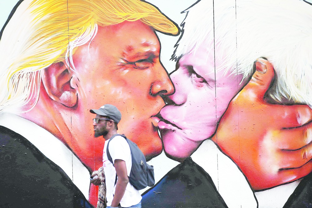 London, May 25 (Reuters): A giant mural of Donald Trump locked in a kiss with former London mayor Boris Johnson in the style of a legendary Soviet-era image has been unveiled by a group campaigning for Britain to stay in the EU.