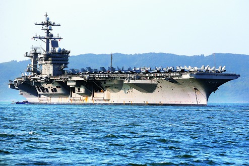 The imposing grey silhouette of the USS Carl Vinson could be seen from the cliff tops just outside the central Vietnamese city of Danang, where the 103,000-tonne carrier and two other US ships begin a five-day visit.